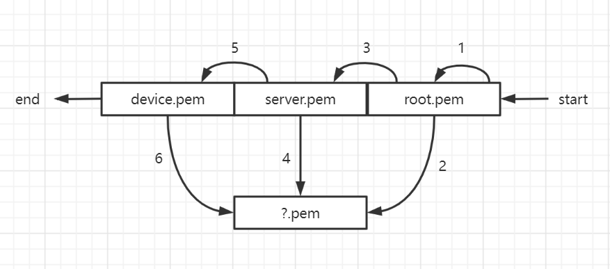 第2、4、6步,任何一步校验成功,则说明在证书链找到了device的签发者,直接返回成功。